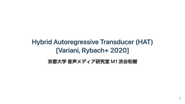 Hybrid Autoregressive Transducer (HAT) [Variani, Rybach+ 2020] 京都大学 音声メディア研究室 M1