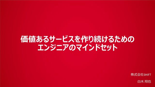 2024/12/7 Developers CAREER Boost 2024 https://event.shoeisha.jp/devboost/20241207 https://event.shoeisha.jp/devboost/20241207/session/5371 株式会社SHIFT ソリューション本部 ソリューション事業部 ITソリューション部 アプリケーション開発テクノロジーグループ 白木翔也
