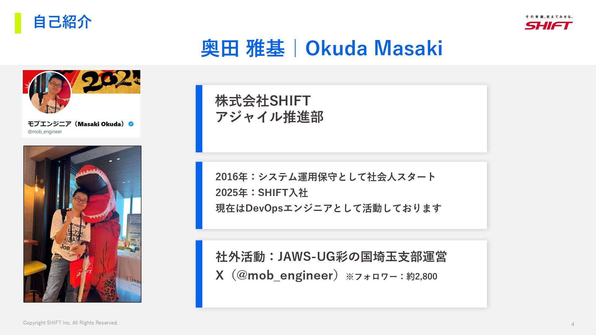 株式会社SHIFT アジャイル推進部 DevOpsエンジニア 奥田雅基
