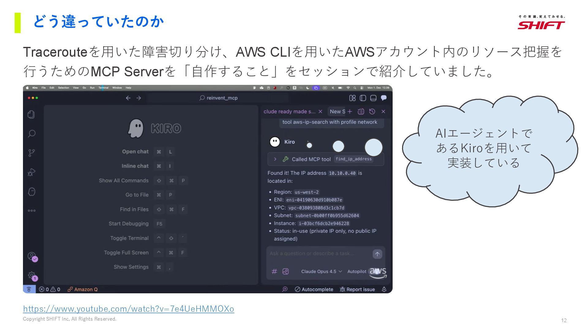 8. 12 Copyright SHIFT Inc, All Rights Reserved. どう違っていたのか Tracerouteを用いた障害切り分け、AWS CLIを用いたAWSアカウント内のリソース把握を