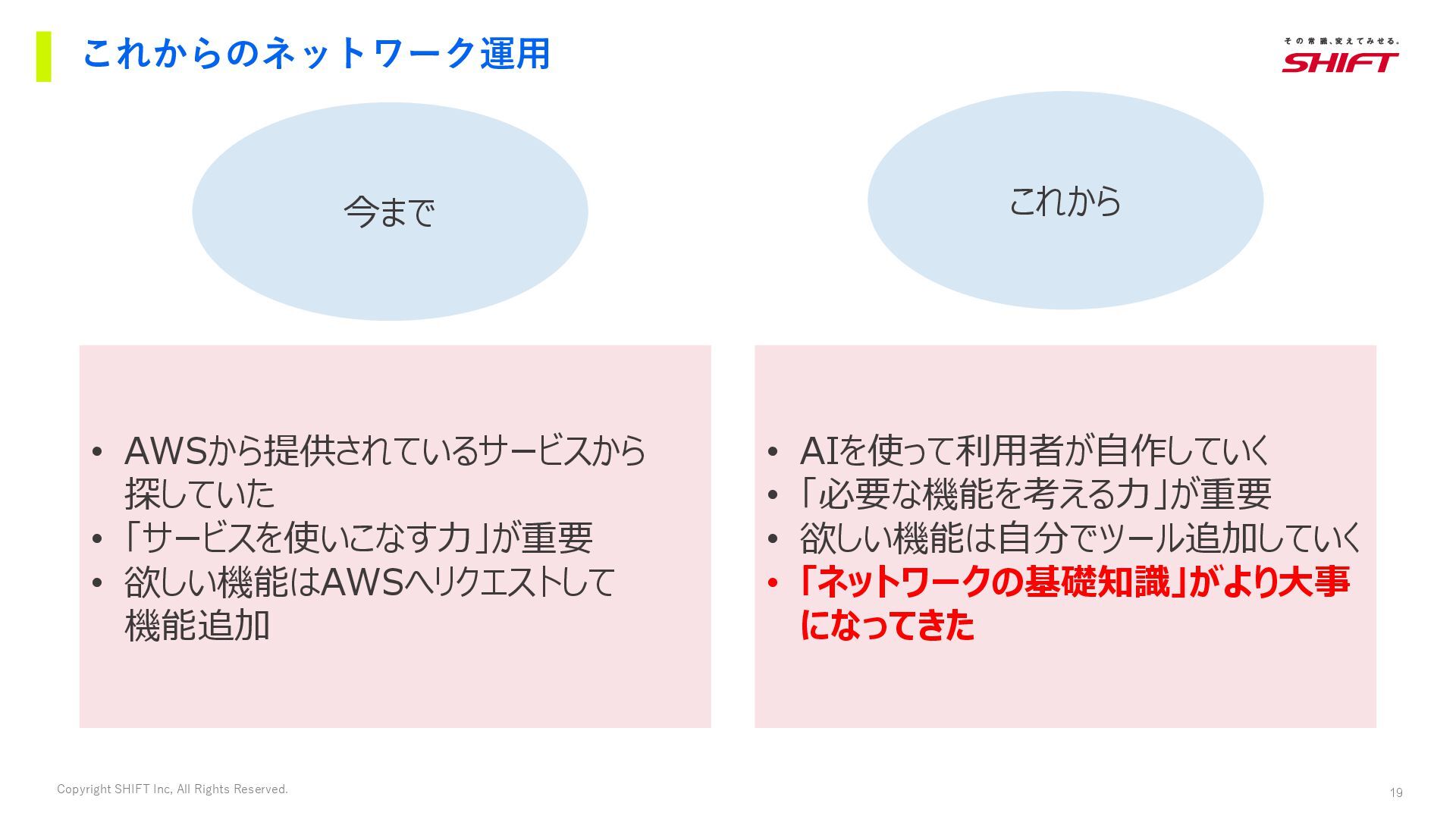 14. 19 Copyright SHIFT Inc, All Rights Reserved. これからのネットワーク運用 今まで これから