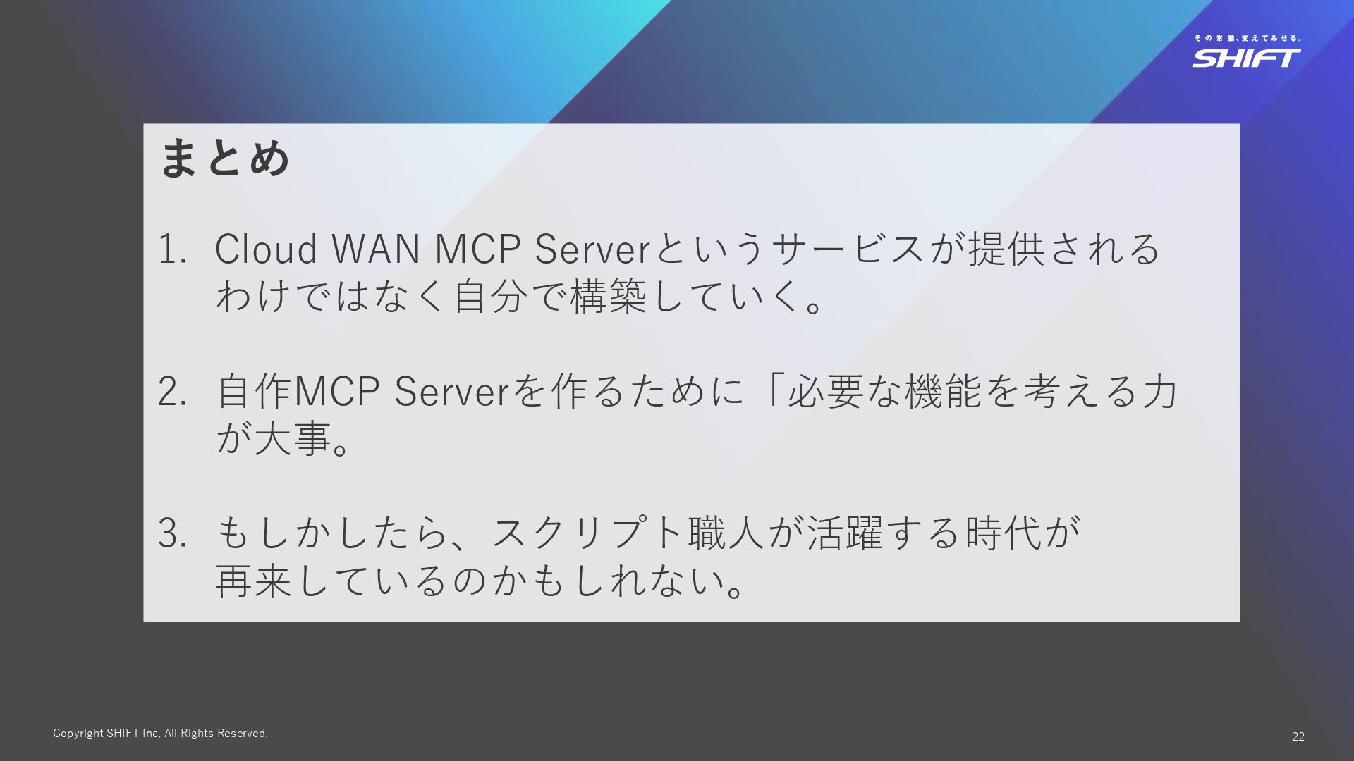 17. Copyright SHIFT Inc, All Rights Reserved. 22 まとめ 1. Cloud