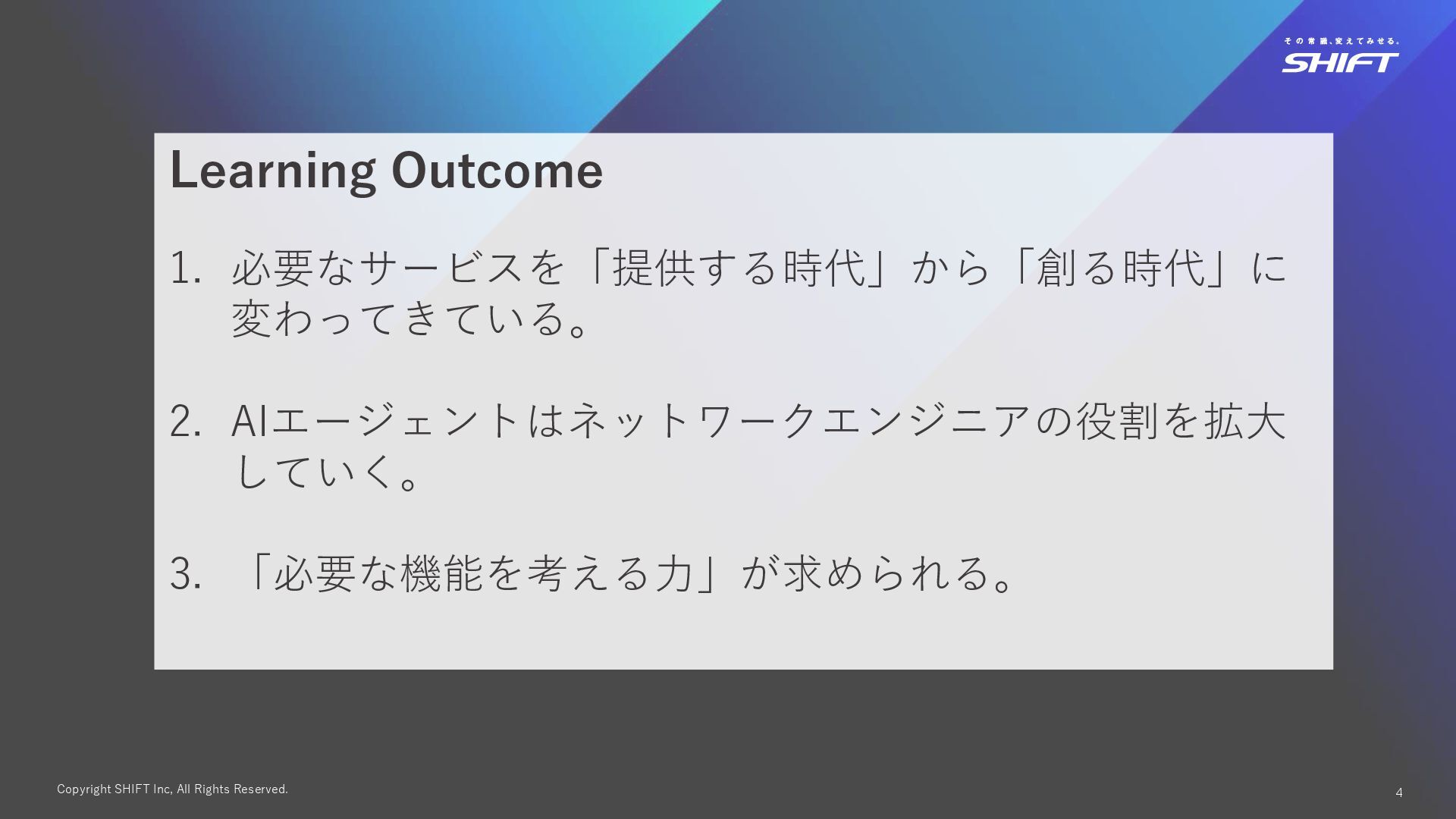 3. Copyright SHIFT Inc, All Rights Reserved. 4 Learning Outcome 1.
