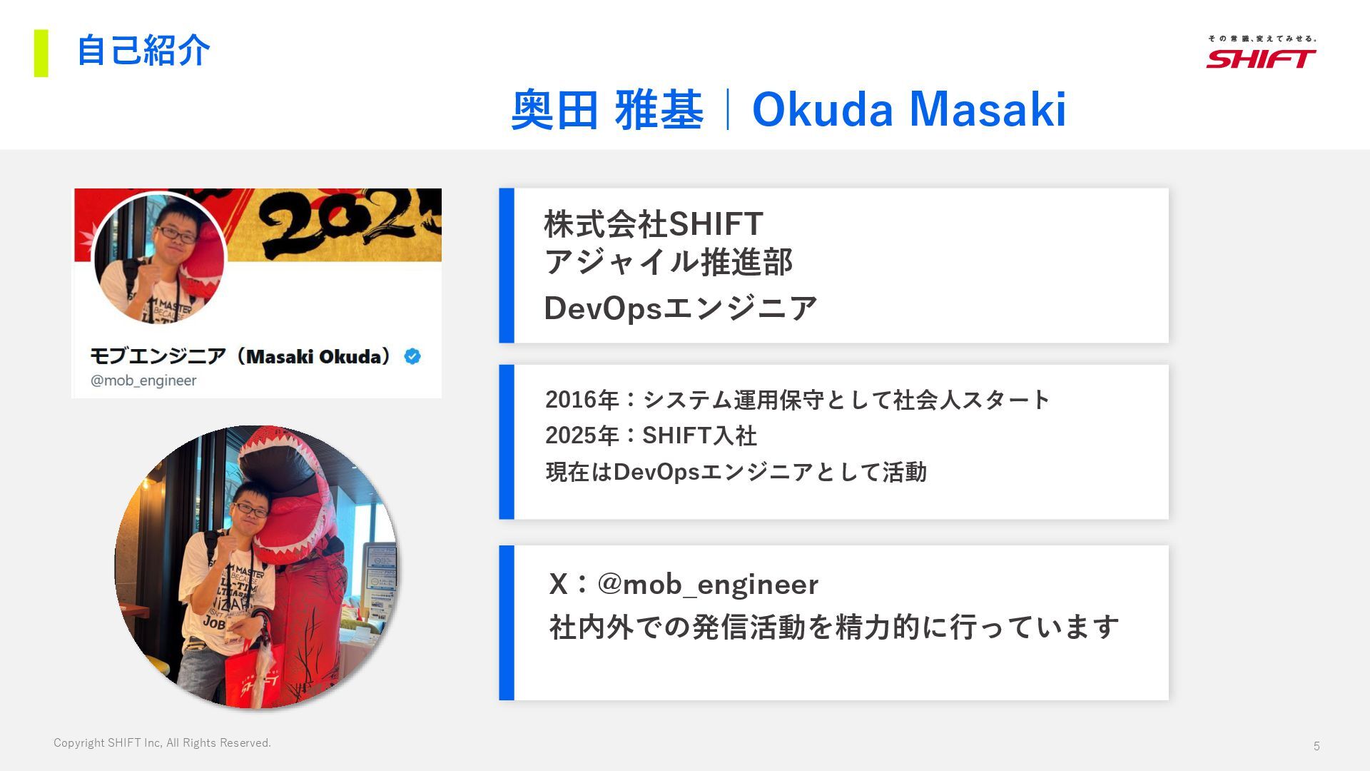 4. 5 Copyright SHIFT Inc, All Rights Reserved. 自己紹介 奥田 雅基|Okuda