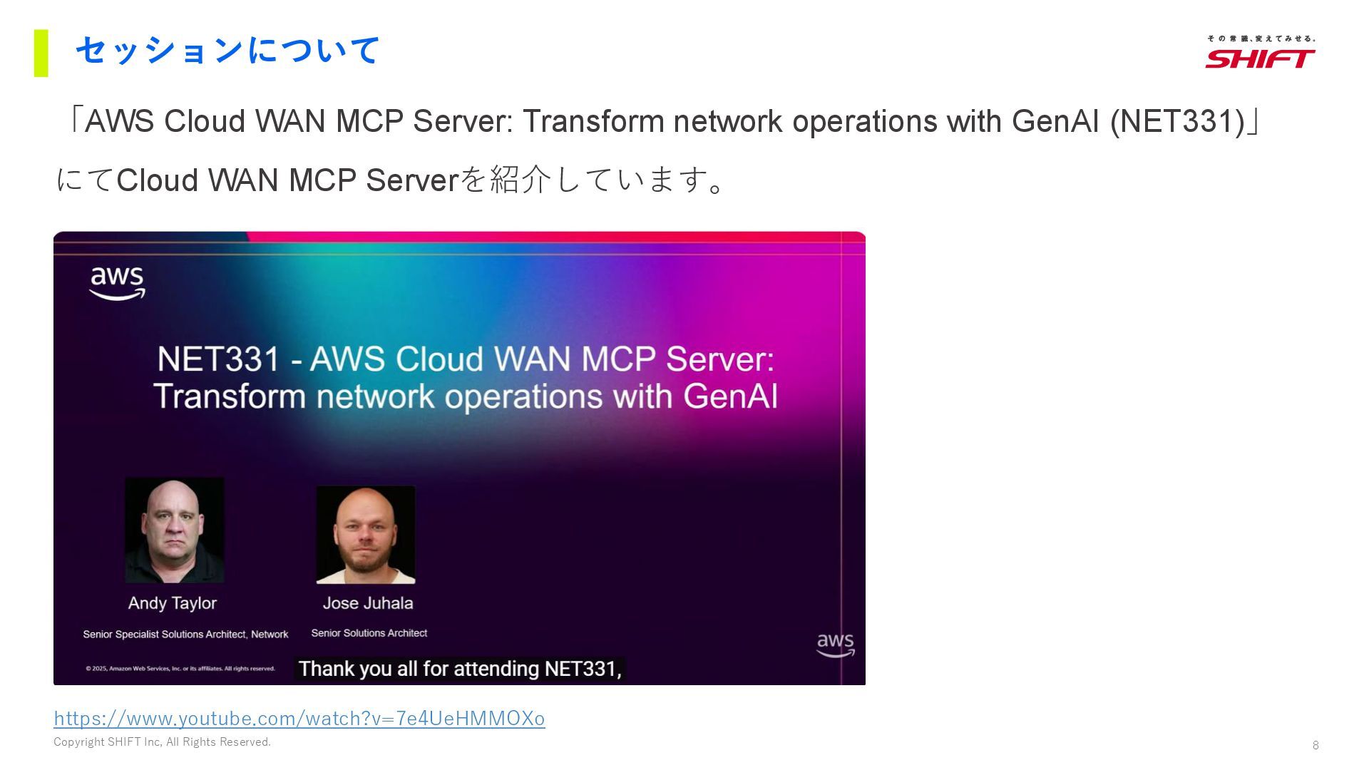 7. 8 Copyright SHIFT Inc, All Rights Reserved. 「AWS Cloud WAN