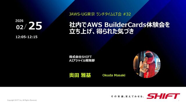 2026/2/25 JAWS-UG東京 ランチタイムLT会 #32 https://jawsug.connpass.com/event/381248/