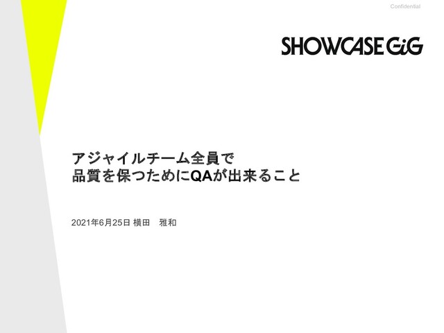 Confidential 2021年6月25日 横田 雅和 アジャイルチーム全員で 品質を保つためにQAが出来ること
