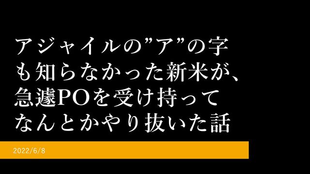 アジャイルの”ア”の字 も知らなかった新米が、 急遽POを受け持って なんとかやり抜いた話 2022/6/8