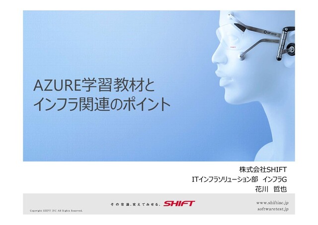 AZURE学習教材と インフラ関連のポイント 株式会社SHIFT ITインフラソリューション部 インフラG 花川 哲也