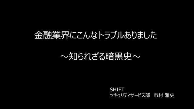金融業界にこんなトラブルありました ~知られざる暗黒史~ SHIFT セキュリティサービス部 市村 雅史