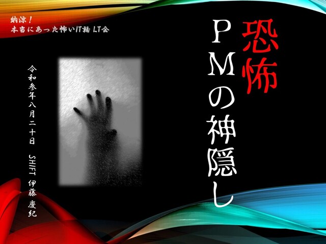 参 年 八 月 二 十 日 SHIFT 伊 藤 慶 紀 納涼! 本当にあった怖いIT話 LT会