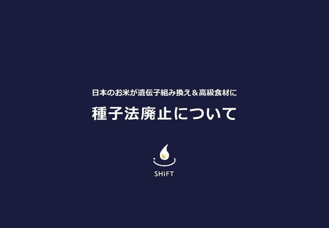 改めて「種子法廃止」の意味することとは 役割 関係機関 STEP 1 米、麦、大豆の種子を公共財 として安定供給する責任 (指示を出し、予算をつける) 日本政府 STEP 2 原原種・原種の生産 (採取農家へ原種を提供する) 都道府県 STEP 3 種子の生産 採種農家 STEP1~3を経て、農家へ種子が提供される Before 役割 関係機関 STEP 1 米、麦、大豆の種子を公共財 として安定供給する責任 (指示を出し、予算をつける) 国 STEP 2 原原種・原種の生産 (採取農家へ原種を提供する) 都道府県 STEP 3 種子の生産 採種農家 国による責任=指示と予算がなくなるため 原原種・原種・種子の生産が都道府県任せとなる 厳密なプロセスで行われる生産を 管理・指示・予算無しで行うことは厳しい After