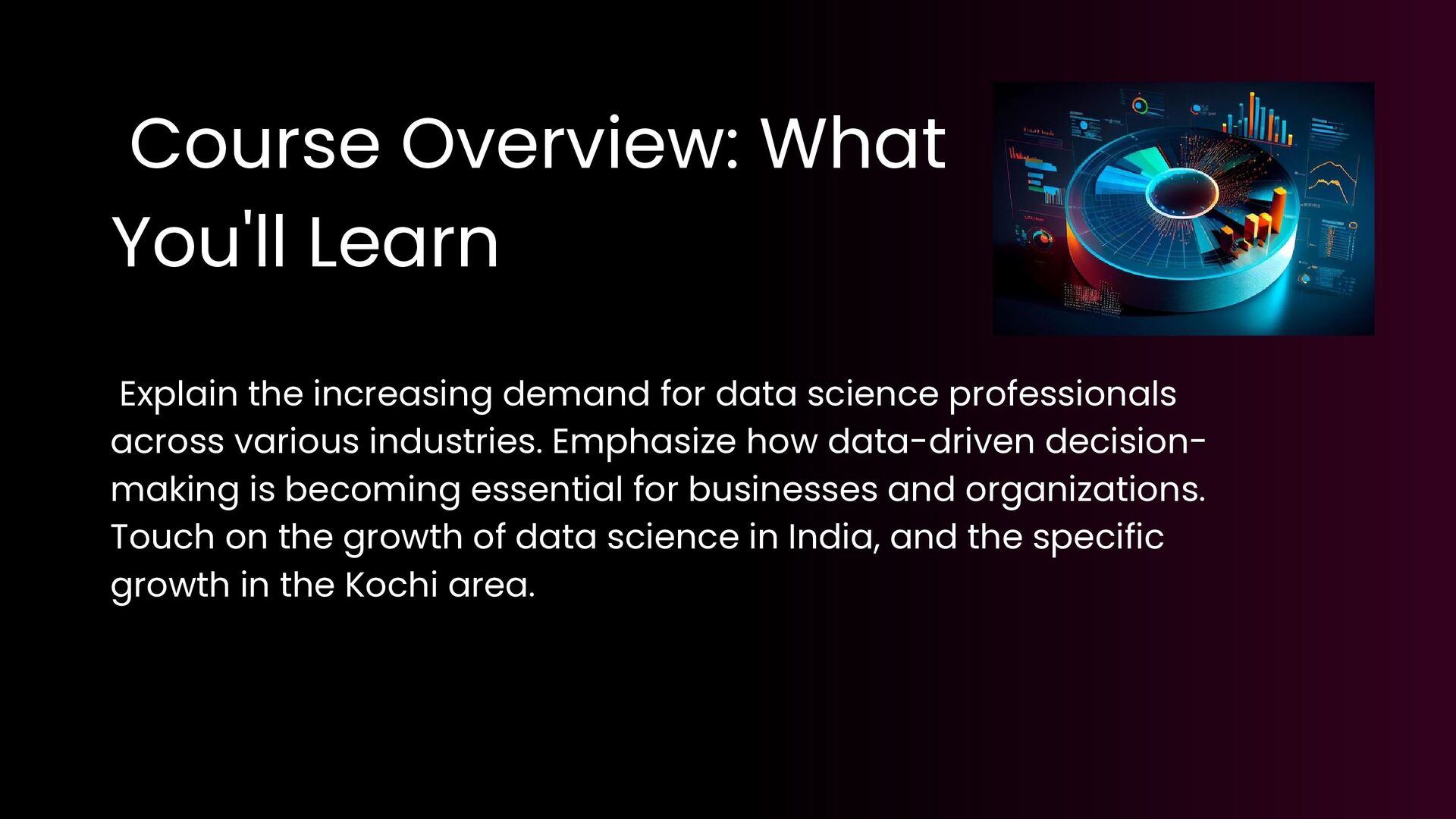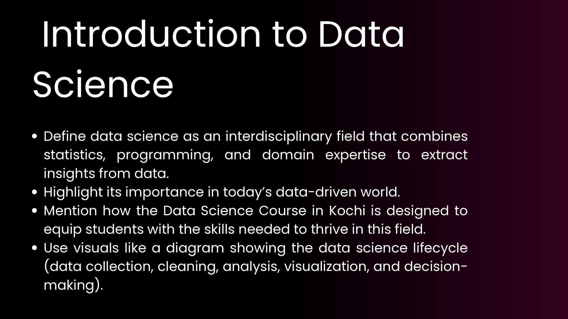 "Data Science is the art of transforming raw data into actionable insights. By combining statistics, programming, and domain expertise, it uncovers patterns, predicts trends, and drives decision-making. From healthcare to finance, data science powers innovation across industries, making it one of the most sought-after skills in the digital age."