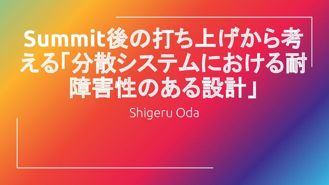 Summit後の打ち上げから考 える「分散システムにおける耐 障害性のある設計」 Shigeru Oda