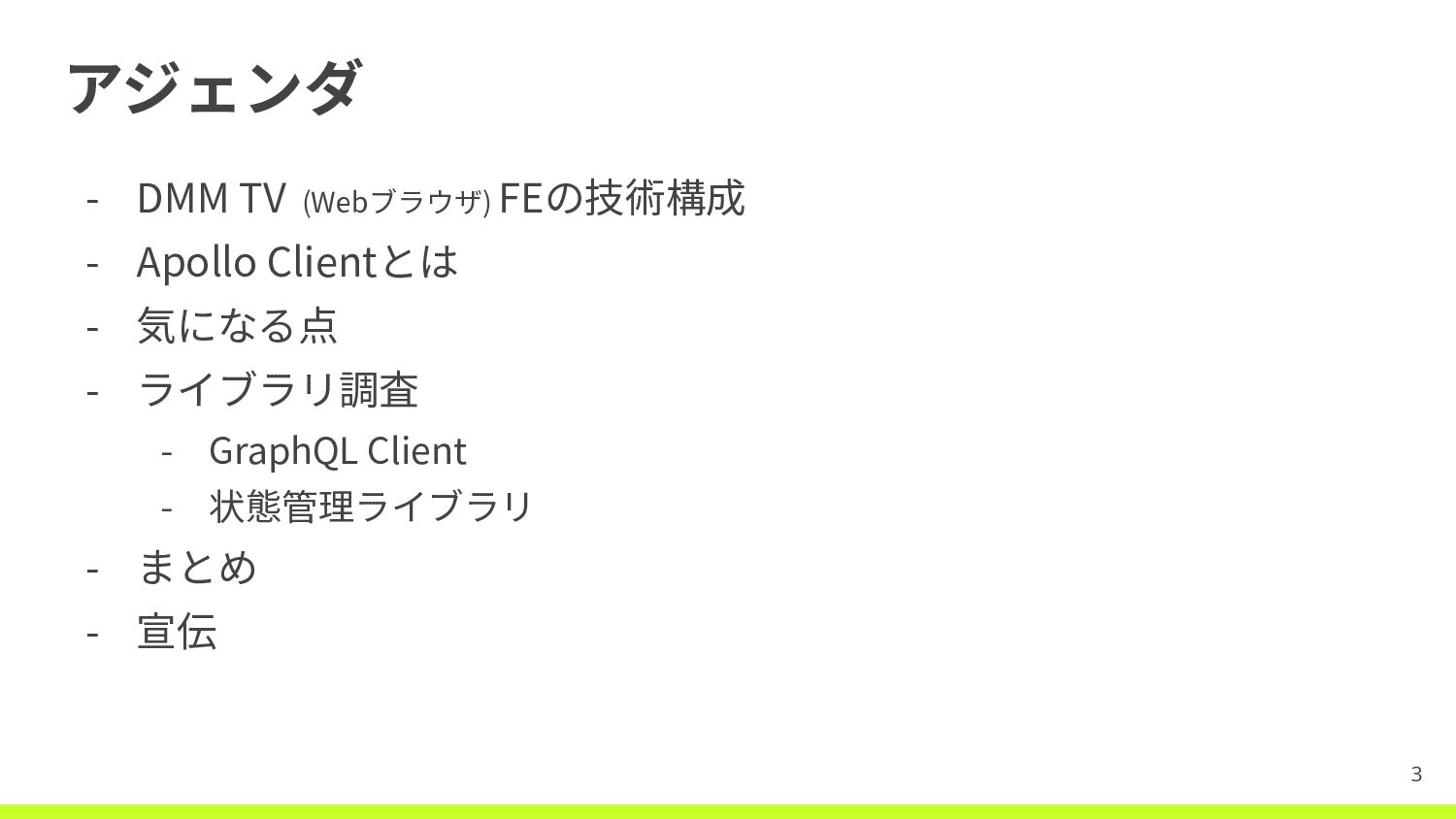 アジェンダ - DMM TV (Webブラウザ) FEの技術構成 - Apollo Clientとは -