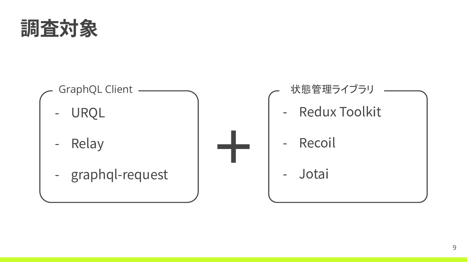 気になる点 - ライブラリ調査 - GraphQL Client - 状態管理ライブラリ - まとめ - 宣伝 3