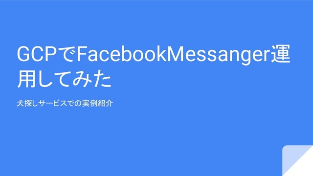 GCPでFacebookMessanger運 用してみた 犬探しサービスでの実例紹介