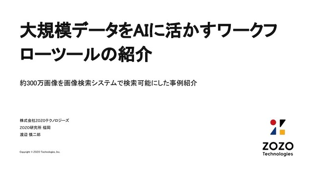 このスライドは ZOZO Technologies Meetup 〜GCPなど大規模データのZOZOテクノロジーズでの活用事例〜 で発表した登壇資料です。