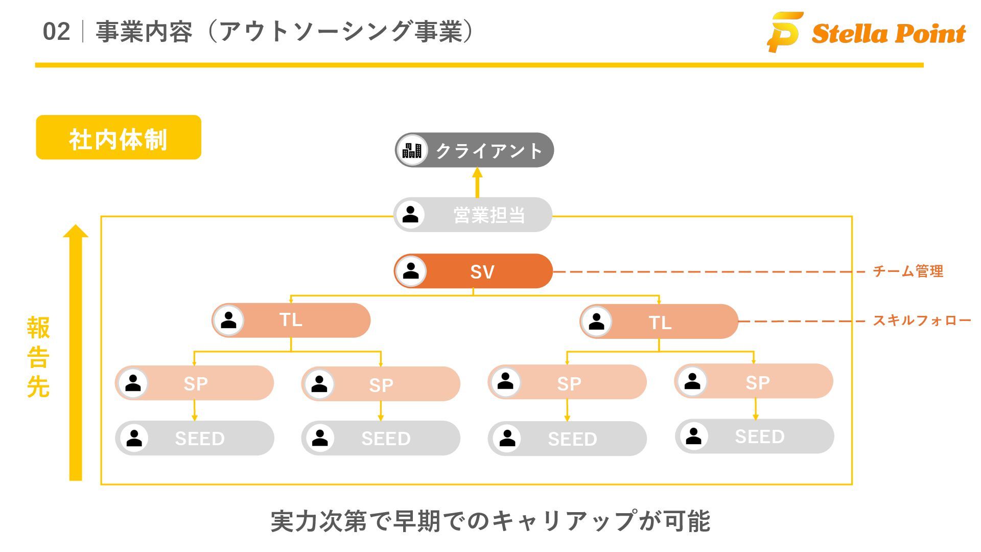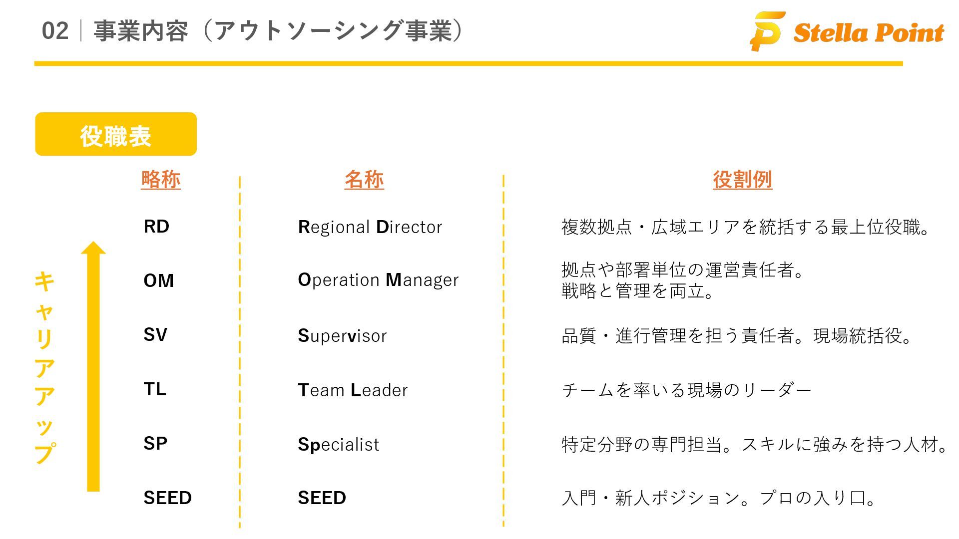 02|事業内容(アウトソーシング事業) 役職表 SEED SP TL SV OM RD Regional Director
