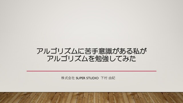 アルゴリズムに苦手意識がある私が アルゴリズムを勉強してみた 株式会社 SUPER STUDIO 下村 由紀