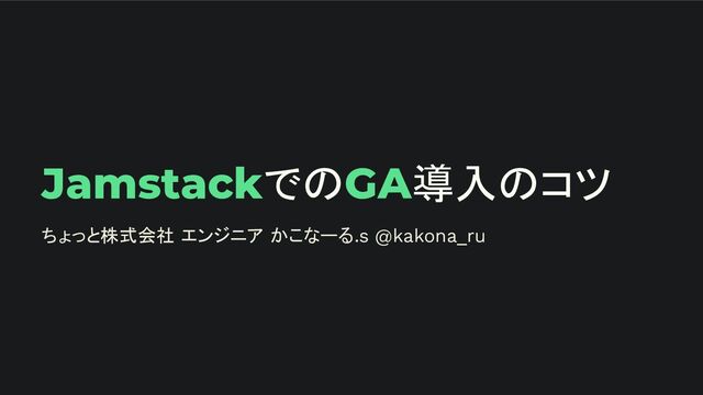 JamstackでのGA導入のコツ ちょっと株式会社 エンジニア かこなーる.s @kakona_ru