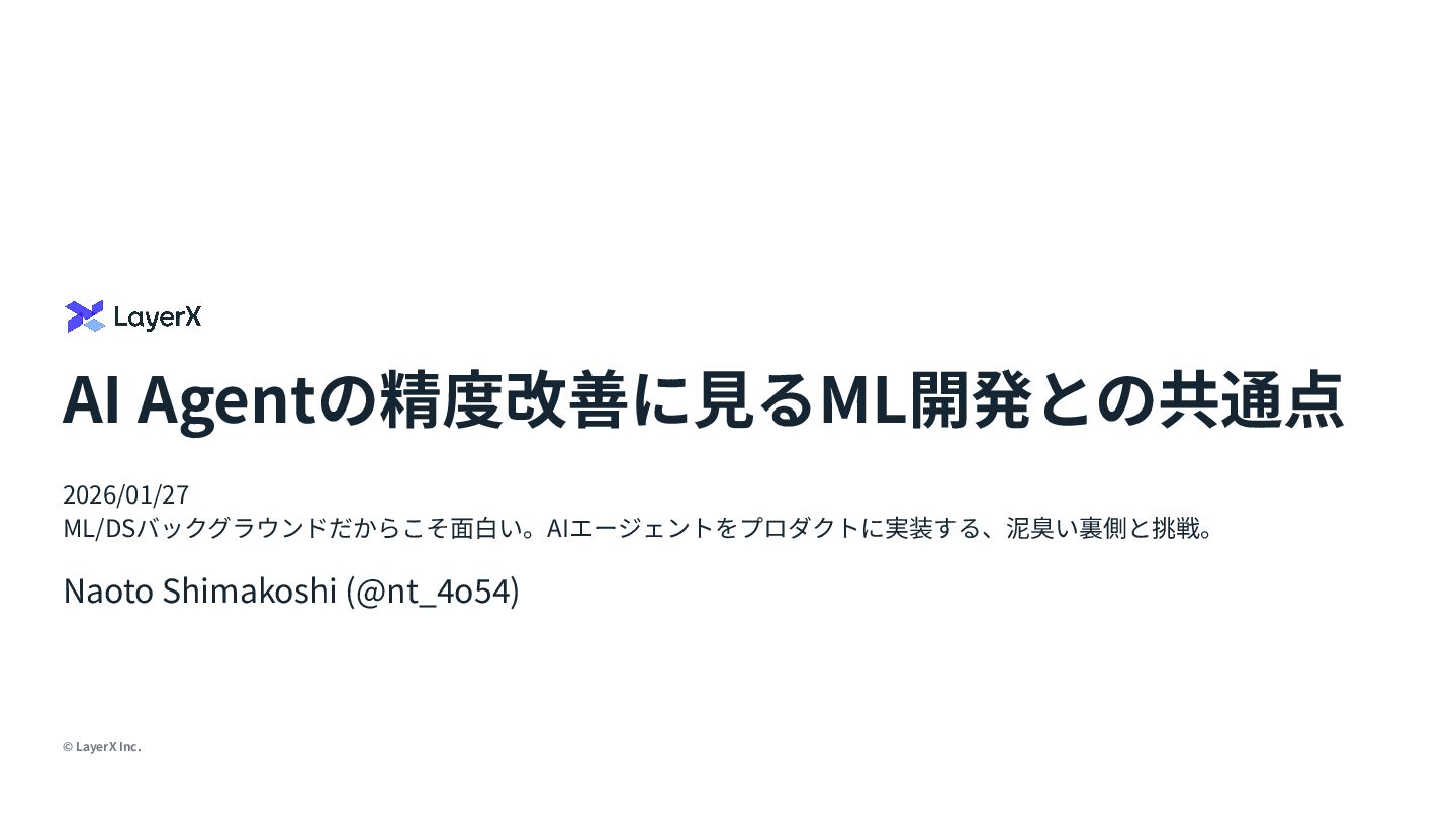 「ML/DSバックグラウンドだからこそ面白い。AIエージェントをプロダクトに実装する、泥臭い裏側と挑戦」での登壇資料です。