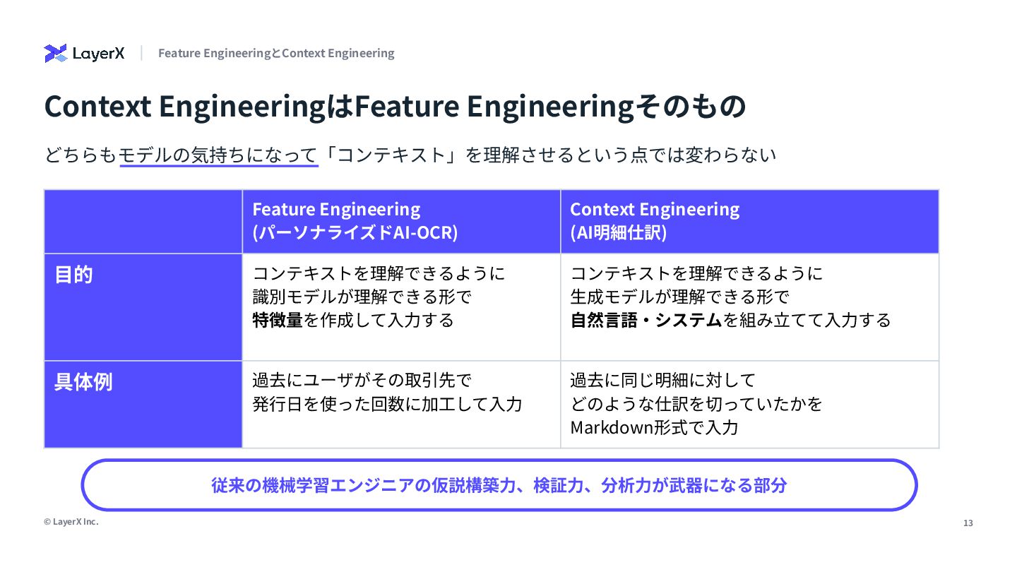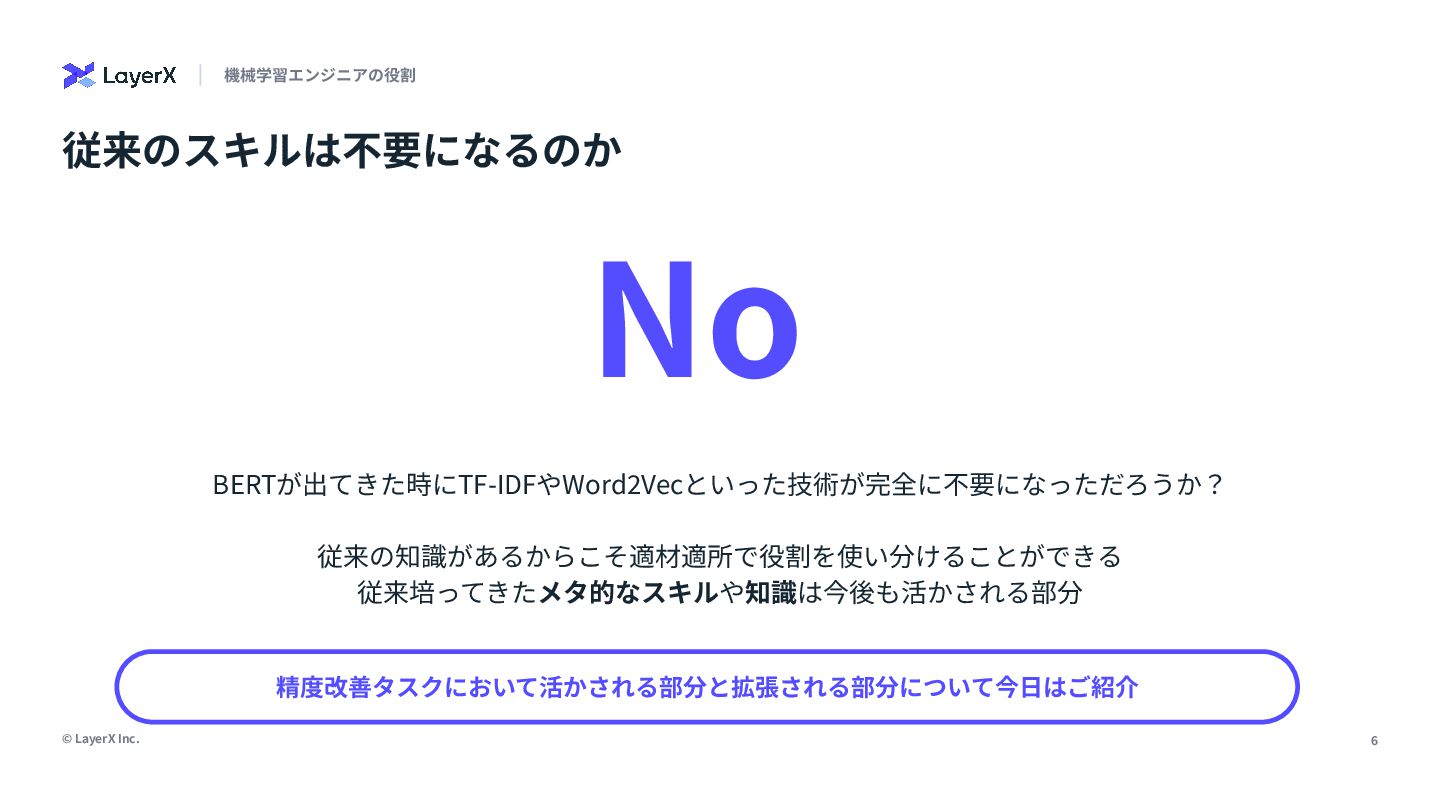 LLMの登場により、機械学習エンジニアの仕事は「賢いモデルを作る」ことから「モデルを賢く使う」ことに変化しつつあります。両者は一見全く違うスキルが必要になるように見えますが、実は従来の機械学習エンジニアとしての経験や勘所が活きる場面がたくさんあります。本発表では、発表者のAgent開発の実体験に基づき、従来の経験が武器になる領域と、逆に考え方やスキルの拡張が必要となる領域についてAI Agentの精度改善プロセスを元に話しました。