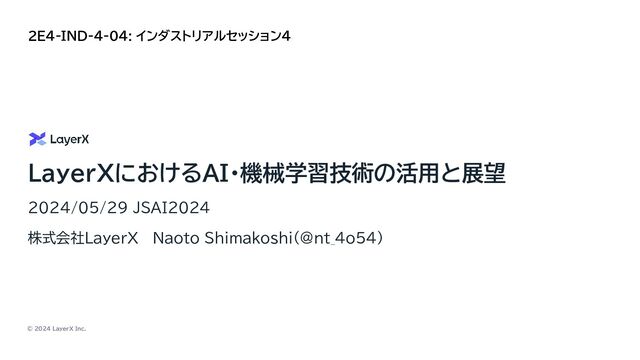 タイトル:LayerXにおけるAI・機械学習技術の活用と展望 セッション:[2E4-IND-4] インダストリアルセッション4 日時:2024年5月29日(水) 13:30 〜 15:10 【E会場】