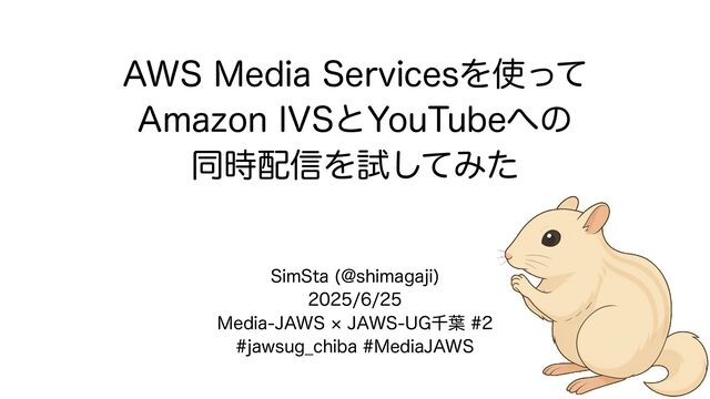 "84.FEJB4FSWJDFTΛͬͯ "NB[PO*74ͱ:PV5VCFͷ ಉ࣌৴Λࢼͯ͠Έͨ 4JN4UB !TIJNBHBKJ .FEJB+"84º+"846(ઍ༿ KBXTVH@DIJCB.FEJB+"84