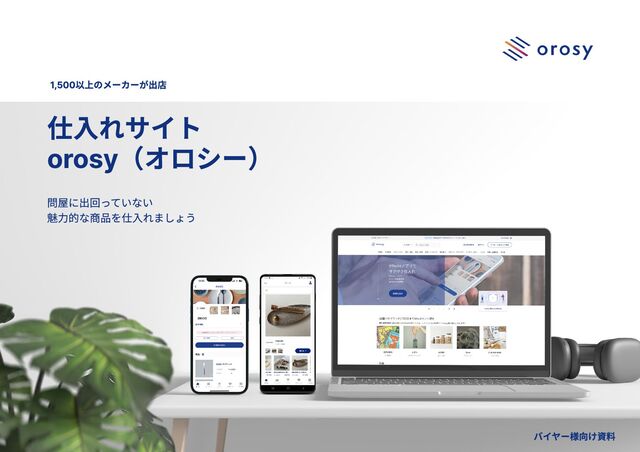 orosyによる 利用審査 御社が運営する店舗がorosy に適しているか確認させて頂 きます。 取引申請を送る 気になるメーカーに取引申請 を送りましょう。許可された ら卸値の確認ができます。 STEP 1 STEP 4 STEP 2 STEP 5 STEP 3 STEP 6 店舗で商品を販売 決済完了から5営業日以内に 商品は各メーカーからバイ ヤーの元へ納品されます。 商品を購入 取引可能なメーカーの商品が卸 値で購入できます。送料を気に せずお気軽に仕入れ可能。 送料 ポイント 付与 90日後 支払いOK 売れ残っても 初回仕入 は返品可