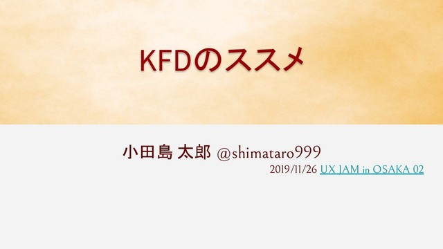 KFDのススメ 小田島 太郎 @shimataro999 2019/11/26 UX JAM in OSAKA 02