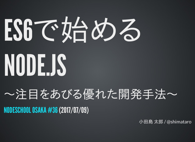 ES6で始める NODE.JS 〜注目をあびる優れた開発手法〜 (2017/07/09) 小田島 太郎 / @shimataro NODESCHOOL OSAKA