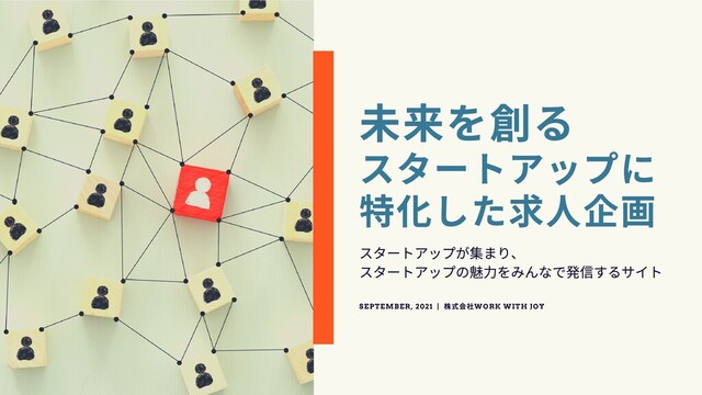 未来を創る スタートアップに 特化した求人企画 スタートアップが集まり、 スタートアップの魅力をみんなで発信するサイト SEPTEMBER, 2021 | 株式会社WORK WITH