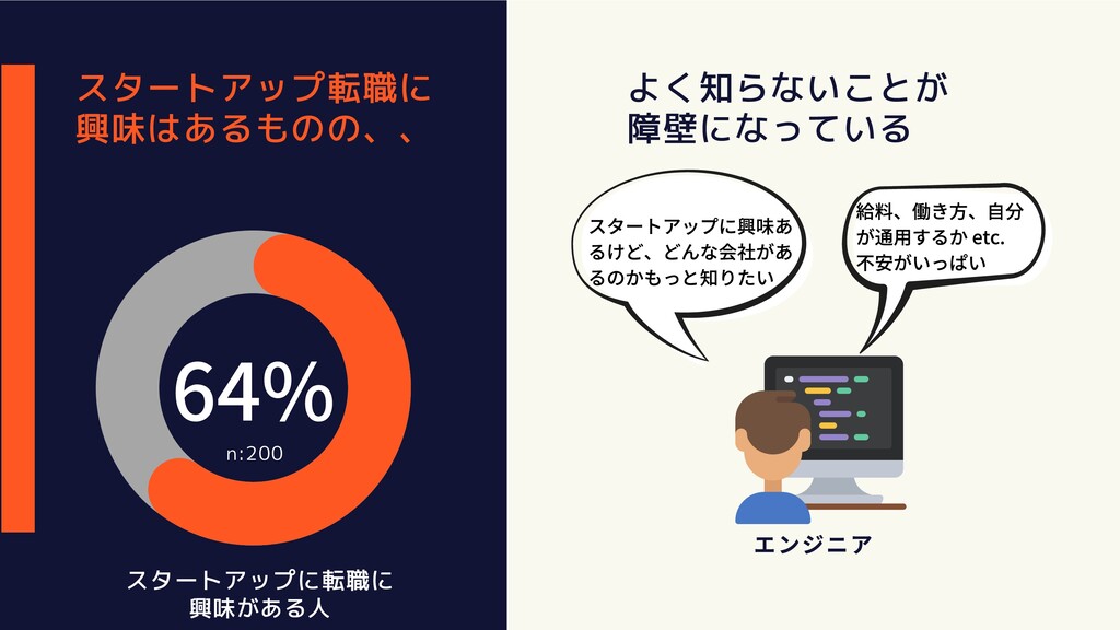 64% スタートアップに転職に 興味がある人 よく知らないことが 障壁になっている n:200
