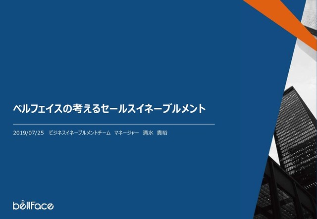 Sales Enablement Conference 急速に成長する企業のセールスチーム設計を紐解く SEC2019で登壇したベルフェイスの登壇資料です