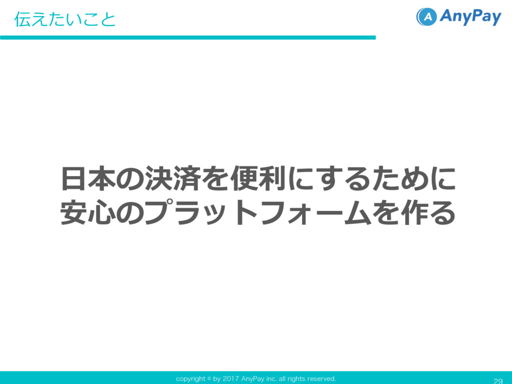 DPQZSJHIUCZ"OZ1BZJOD BMMSJHIUTSFTFSWFE ⽇本の決済を便利にするために 安⼼のプラットフォームを作る 伝えたいこと
