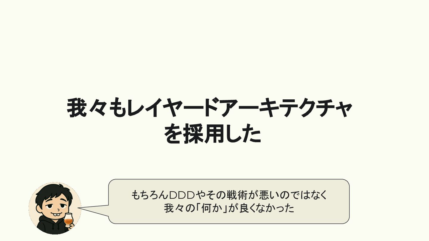 我々もレイヤードアーキテクチャ を採用した もちろんDDDやその戦術が悪いのではなく 我々の「何か」が良くなかった