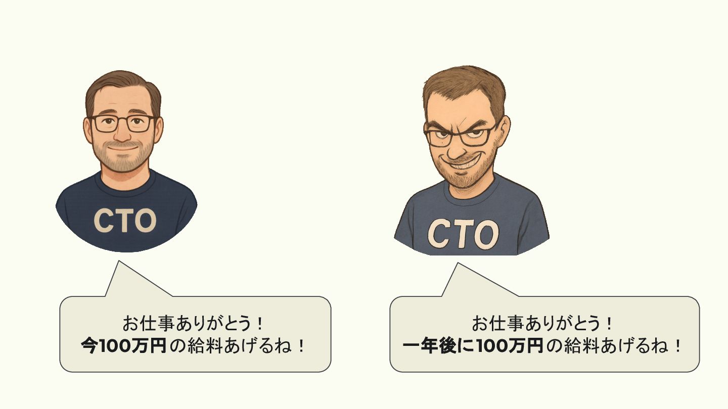 お仕事ありがとう! 今100万円の給料あげるね! お仕事ありがとう! 一年後に100万円の給料あげるね!
