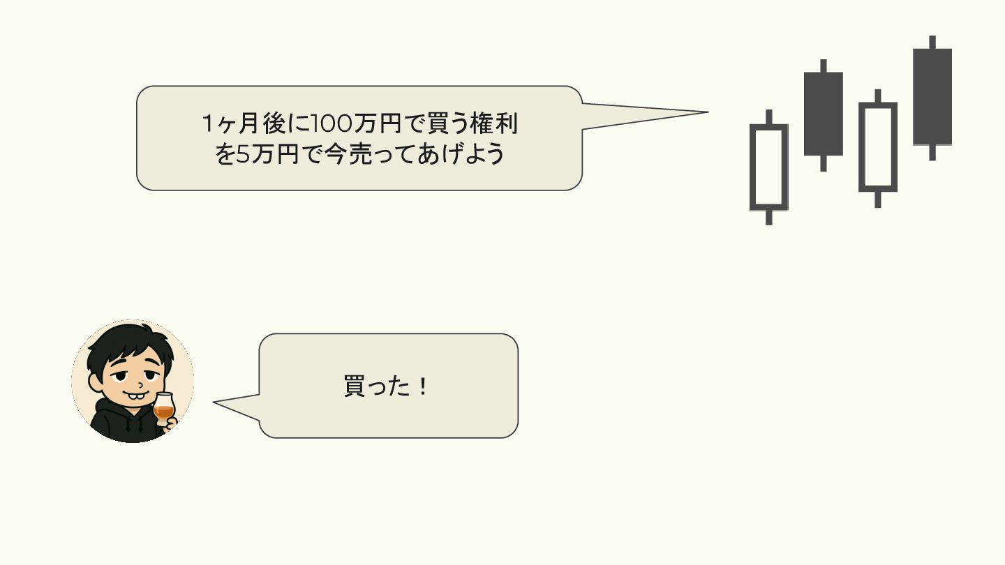 1ヶ月後に100万円で買う権利 を5万円で売ってあげよう