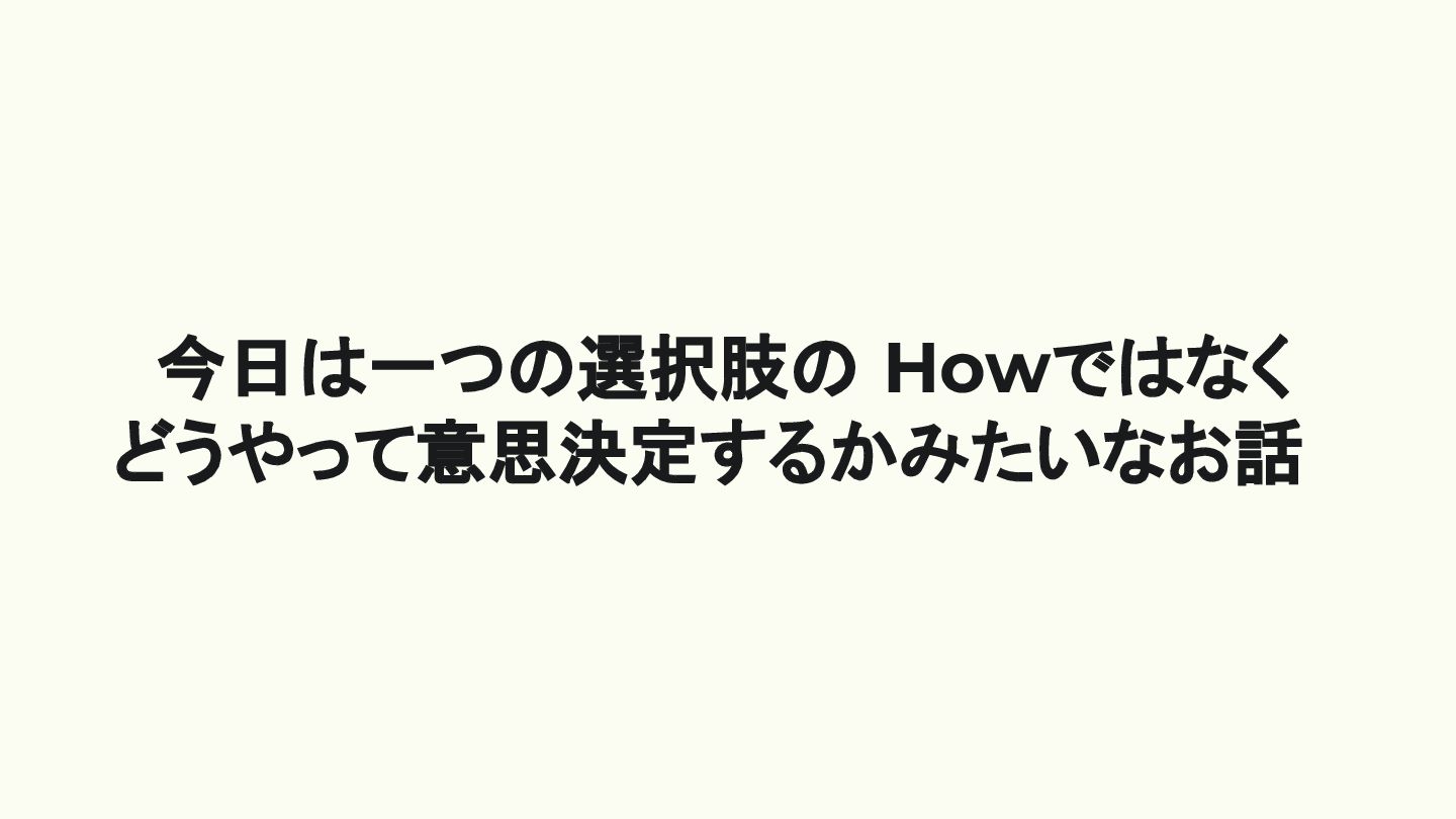 今日は一つの選択肢の Howではなく どうやって意思決定するかみたいなお話