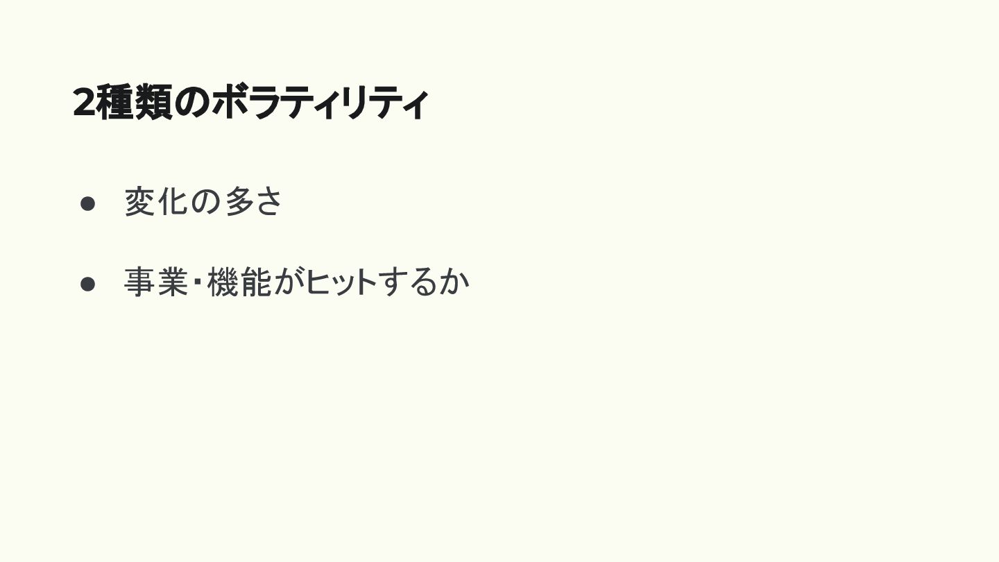 • 変化の多さ • 事業・機能がヒットするか 2種類のボラティリティ