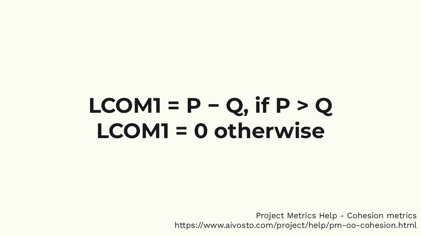 = 0 otherwise Project Metrics Help - Cohesion metrics https://www.aivosto.com/project/help/pm-oo-cohesion.html