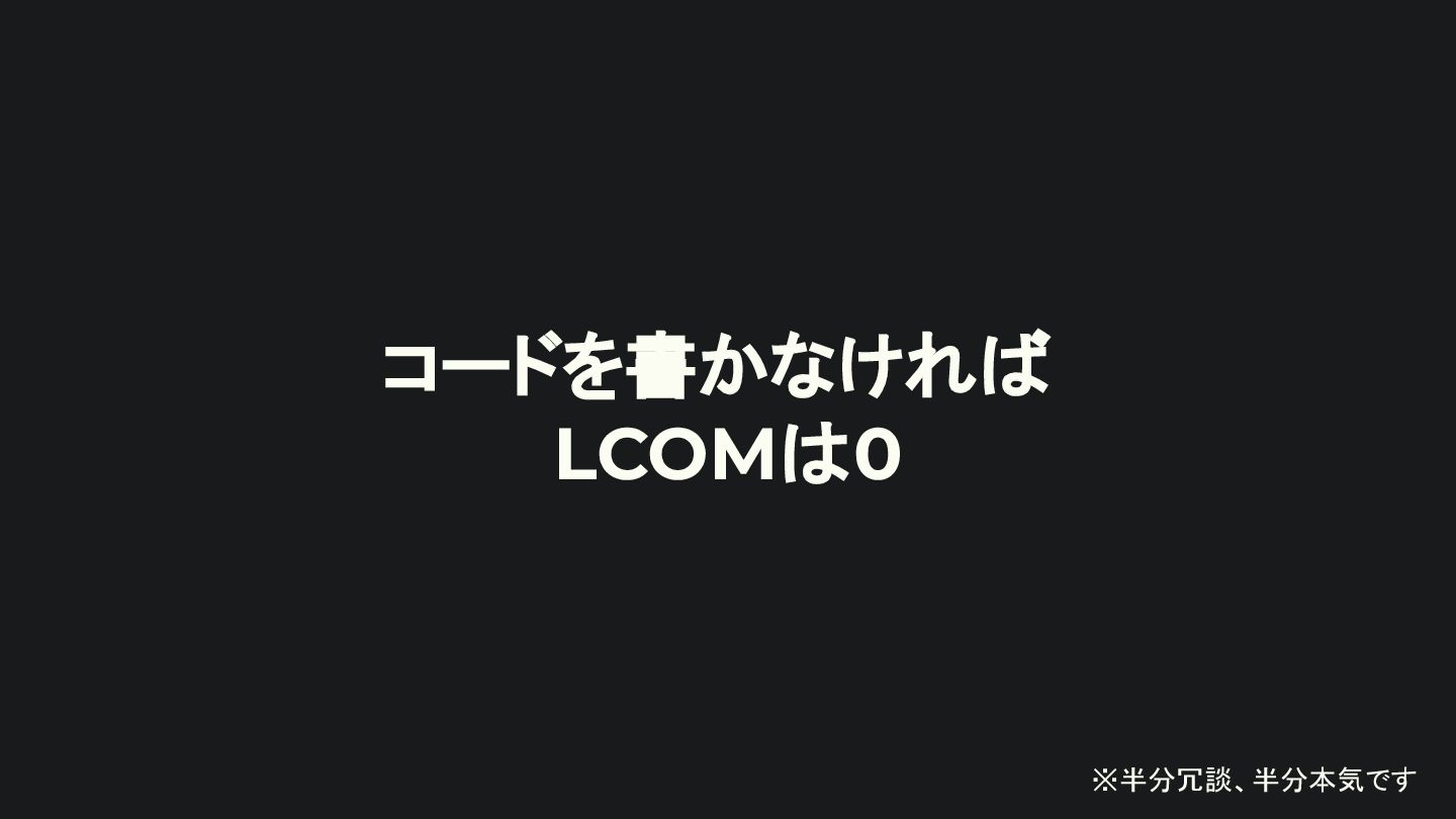 コードを書かなければ LCOMは0 ※半分冗談、半分本気です
