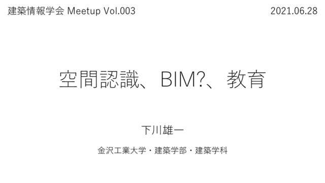 空間認識、BIM?、教育 下川雄一 金沢工業大学・建築学部・建築学科 建築情報学会 Meetup Vol.003 2021.06.28