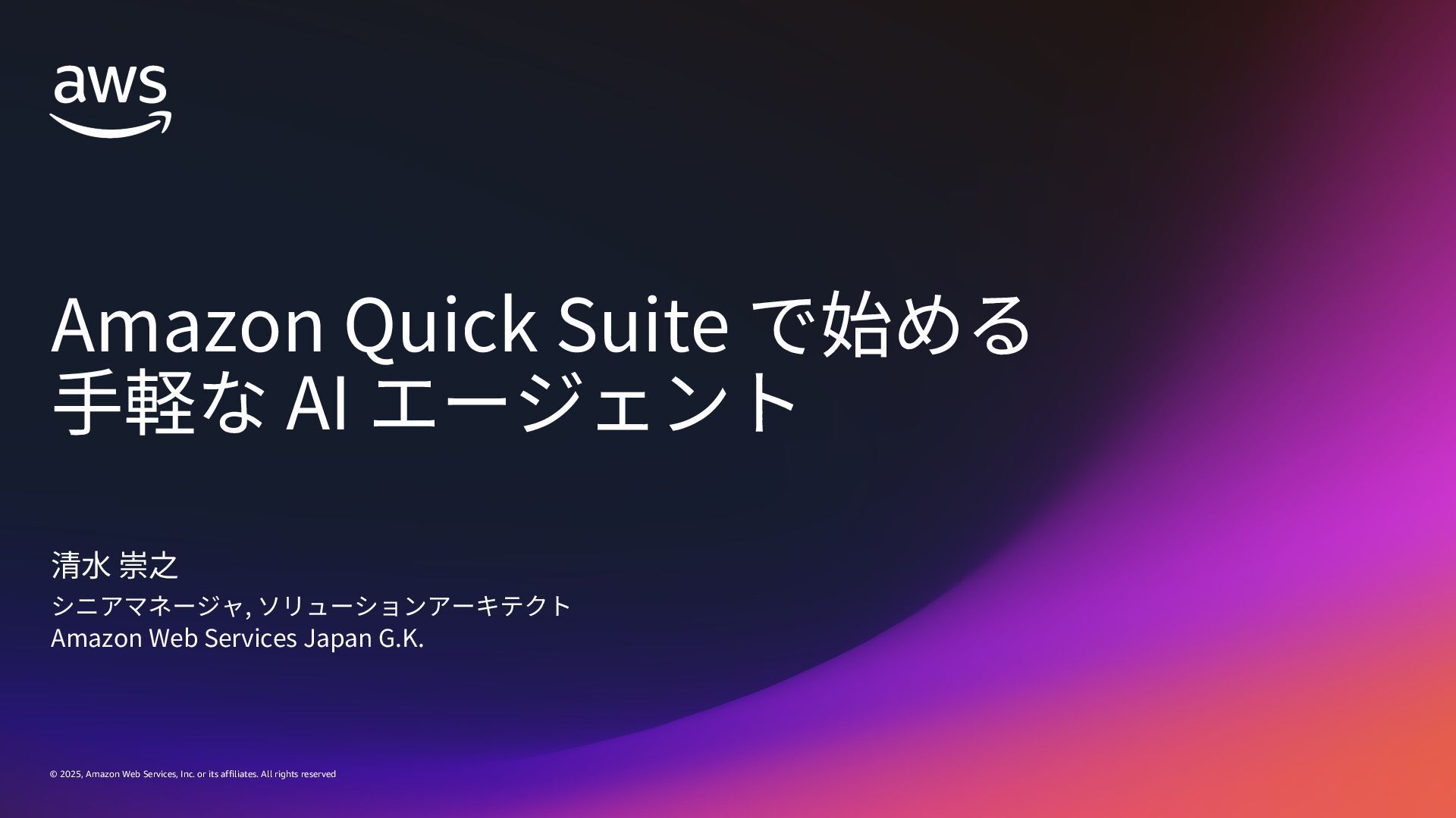 rights reserved 清⽔ 崇之 シニアマネージャ, ソリューションアーキテクト Amazon Web Services Japan G.K. Amazon Quick Suite で始める ⼿軽な AI エージェント