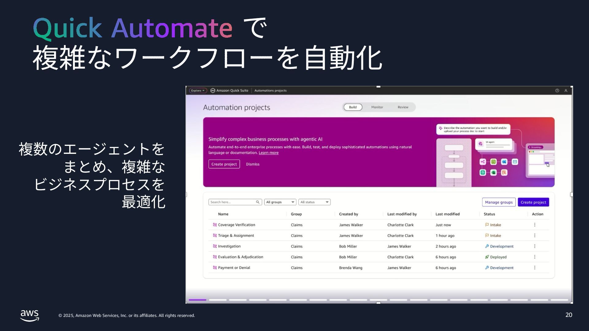 rights reserved. 複数のエージェントを まとめ、複雑な ビジネスプロセスを 最適化 で 複雑なワークフローを⾃動化 20