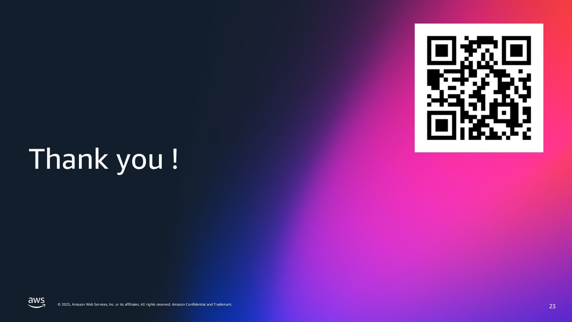 rights reserved. © 2025, Amazon Web Services, Inc. or its affiliates. All rights reserved. Amazon Confidential and Trademark. Thank you ! 23