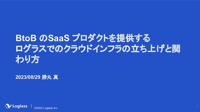 1 ©2023 Loglass Inc. BtoB のSaaS プロダクトを提供する ログラスでのクラウドインフラの立ち上げと関 わり方 2023/08/29