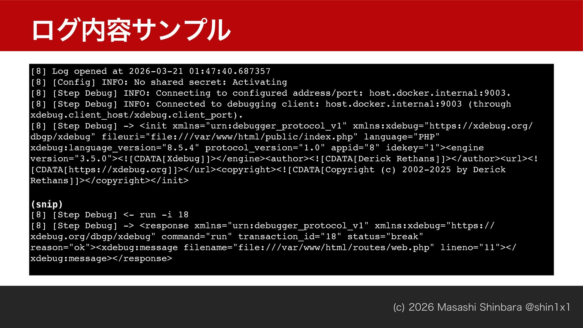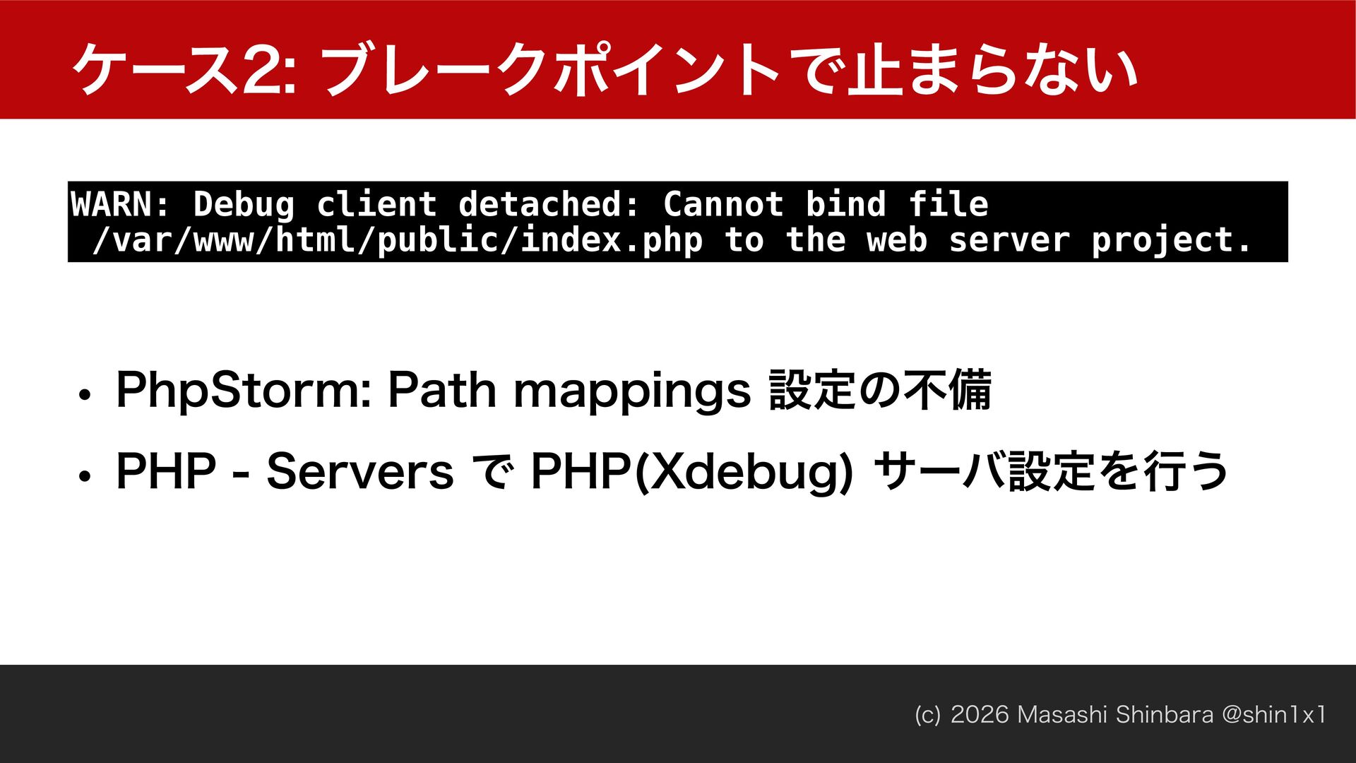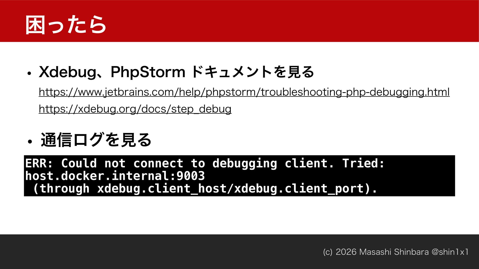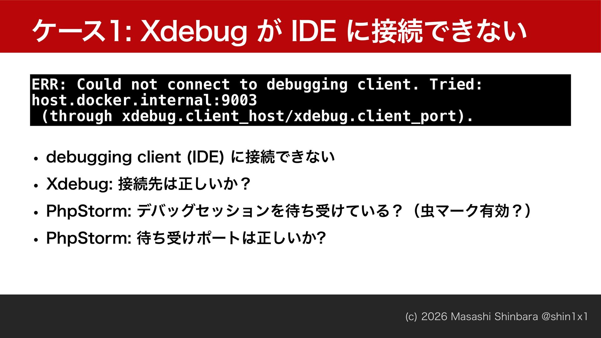Tried: host.docker.internal:9003 (through xdebug.client_host/xdebug.client_port). w EFCVHHJOHDMJFOU *%& ʹଓͰ͖ͳ͍ w 9EFCVHଓઌਖ਼͍͔͠ʁ w 1IQ4UPSNσόοάηογϣϯΛͪड͚͍ͯΔʁʢϚʔΫ༗ޮʁʣ w 1IQ4UPSNͪड͚ϙʔτਖ਼͍͔͠
