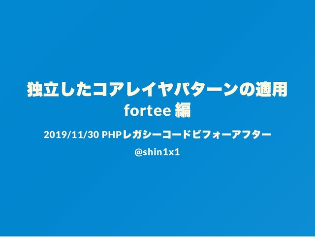 独立したコアレイヤパターンの適用 fortee 編 2019/11/30 PHP レガシーコードビフォーアフター @shin1x1